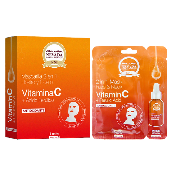 La mascarilla facial de doble uso, rostro y cuello, cumple la funcion de humectar y hidratar la piel alimentando las células de esta con vitamina C y ácido ferúlico, los cuales son ideales para prevenir el envejecimiento y protegendo lapiel de bácterias y la resequedad